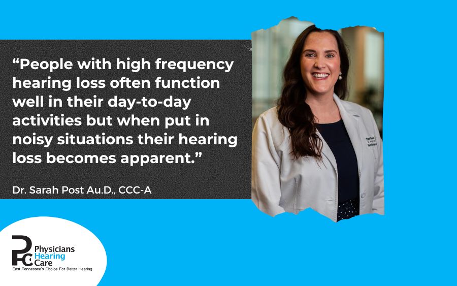 If that statement sounds like you, don’t worry, you’re not going crazy. People with high frequency hearing loss often function well in their day-to-day activities but when put in noisy situations their hearing loss becomes apparent.