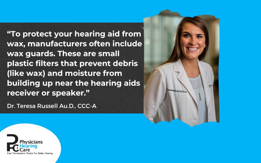 To protect your hearing aid from wax, manufacturers often include wax guards. These are small plastic filters that prevent debris (like wax) and moisture from building up near the hearing aids receiver or speaker.